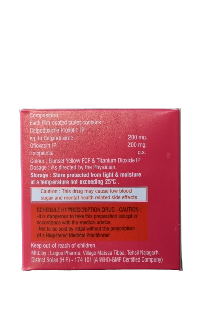 Cefpodoxime(200mg)+Ofloxacin(200mg)+Excipients(q.s.)